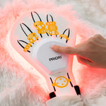Cleanse hands. Place your hand into the UNVEILED Glove and secure with the Velcro strap. Switch on the glove by pressing the ON/OFF button. Glove will automatically turn off once 10 minute session is complete.